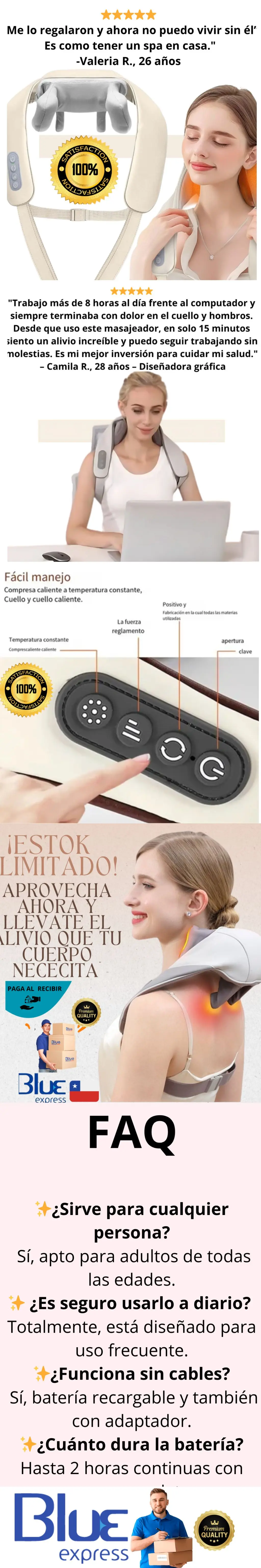Exelente masajeador me ayudo mucho con mis dolores de cuello y además llego a tiempo.